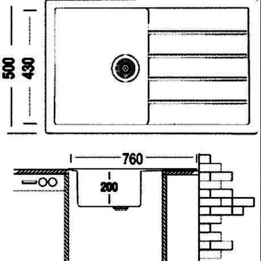 -25% ЧЕРЕН ПЕТЪККухненска мивка Angora, 76*50 cm, кварц, сатен, 760/500ag