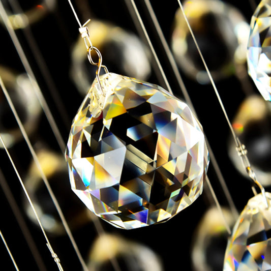 Окачен LED полилей с дистанционно управление и кристал 37W, 2 кръга, Студена/Топла/Неутрална светлина, Димируем, Блестящ хром, Регулируема височина