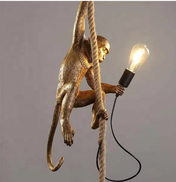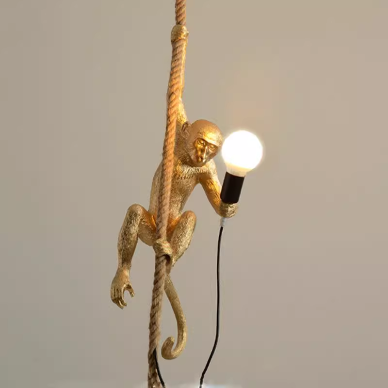 Винтидж полилей Corda, 1xE27, рустик, връв и метал, 130 см, черна опора