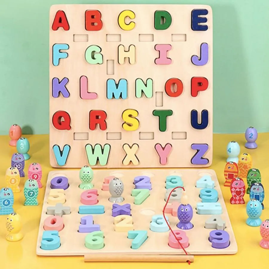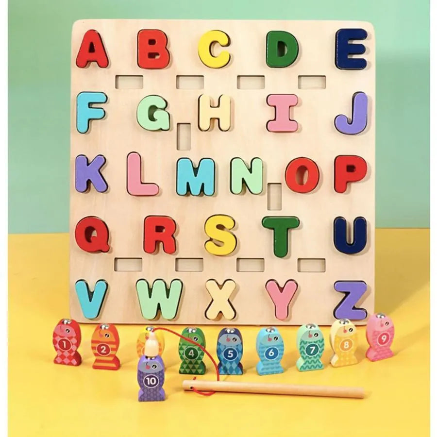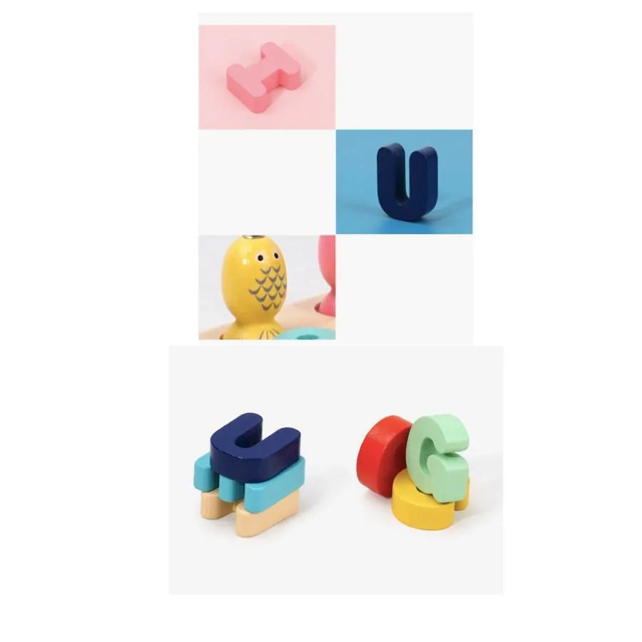 Играчка за образователна дъска с многоцветни букви и риба, 36 парчета, дърво