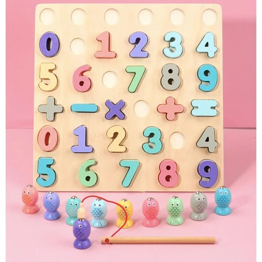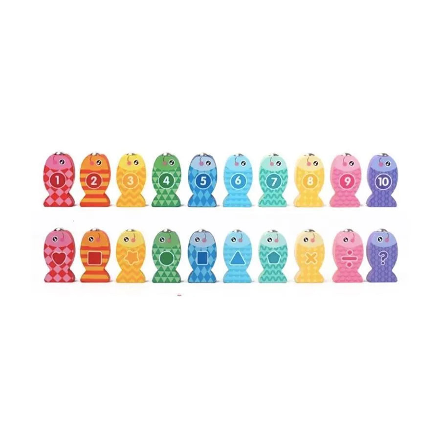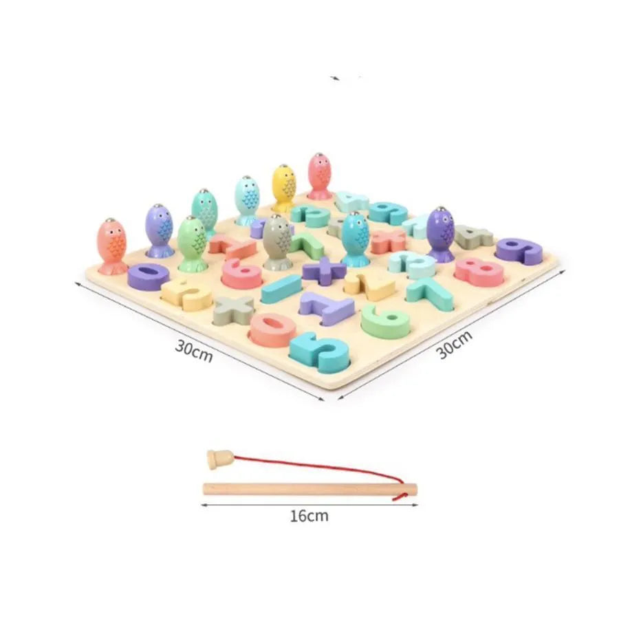 Играчка за образователна дъска с многоцветни фигури и риба, 36 парчета, дърво