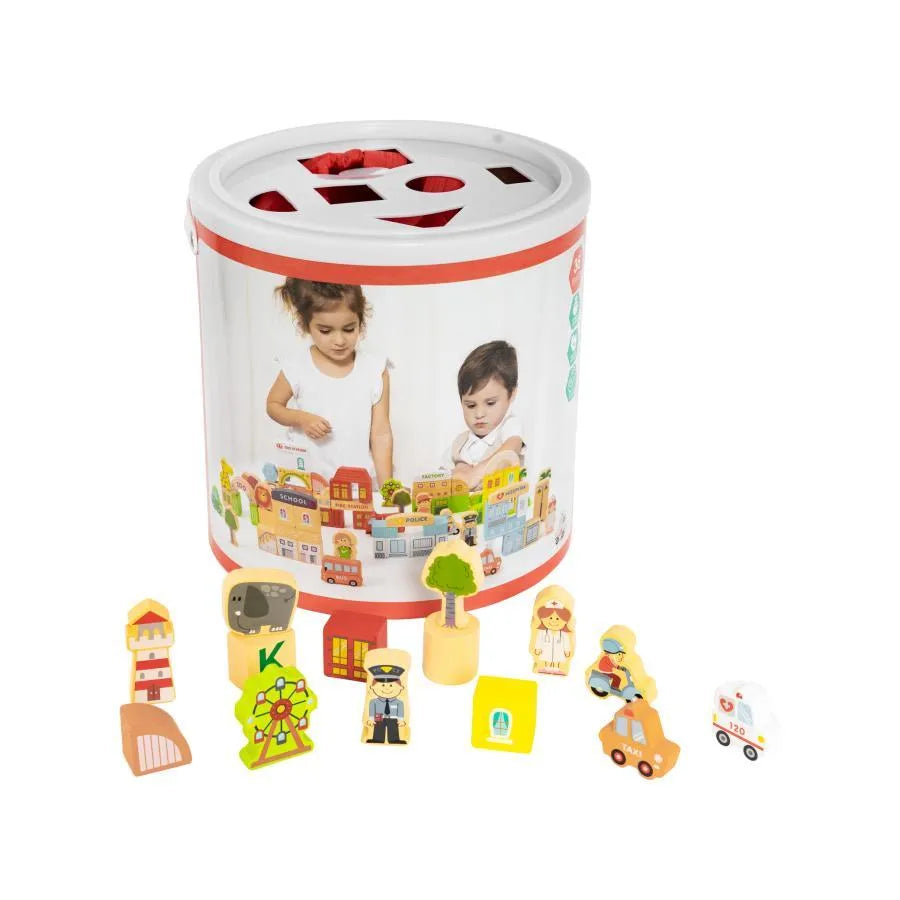 Игра тип пъзел за изграждане на град Sunrise, многоцветна, дърво