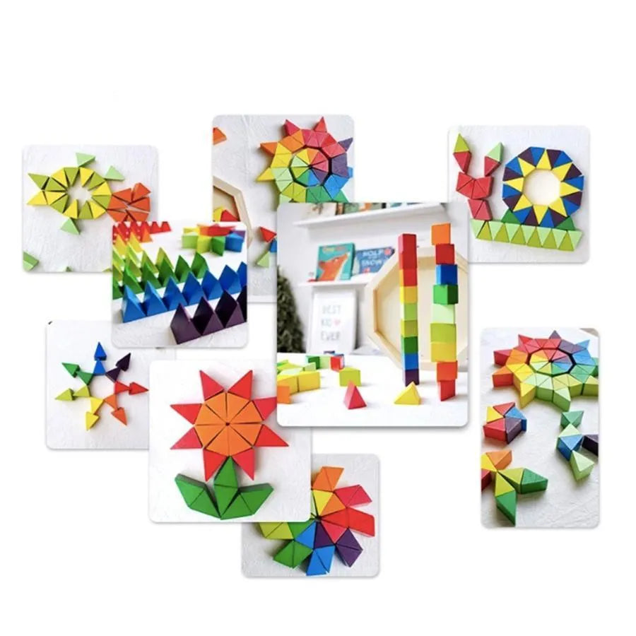 Игра тип пъзел многоцветни кубизъм, 72 броя, дърво