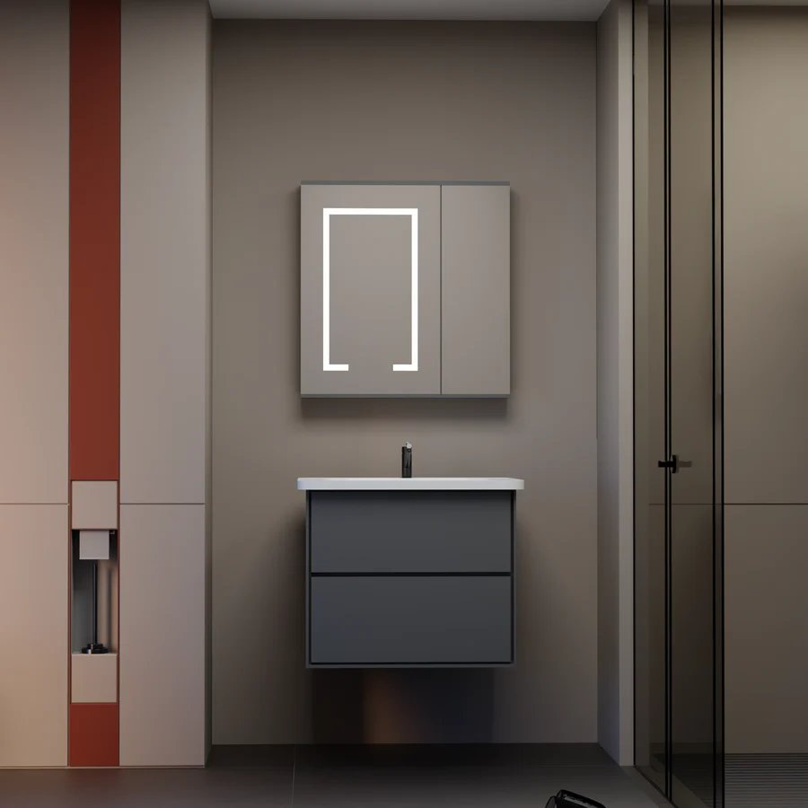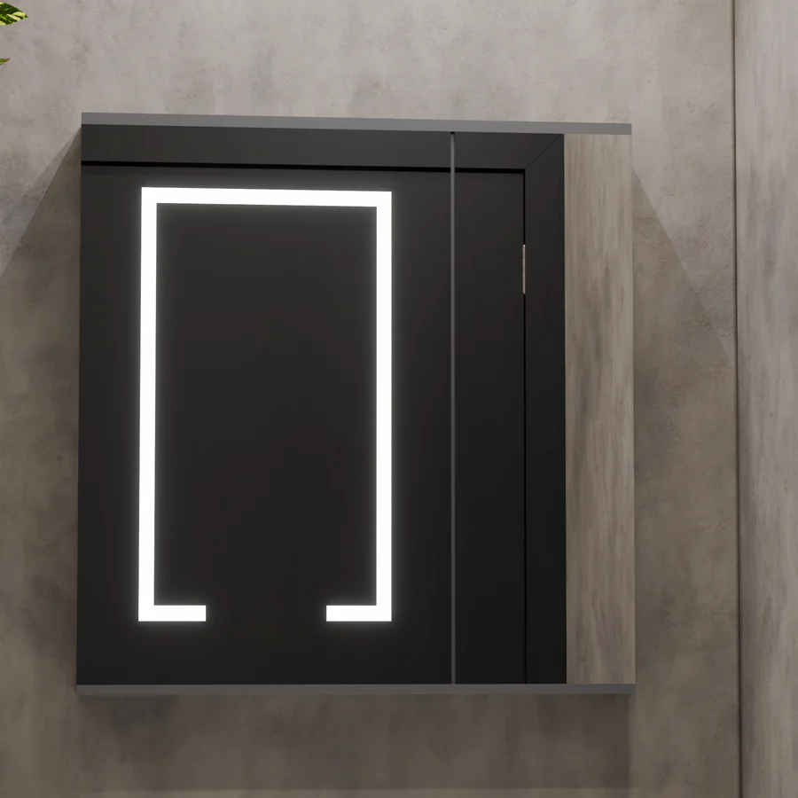1. Горна част на тялото (мебели с LED огледало) (60X50X53): Това е окачен шкаф, който включва огледало отпред. LED осветителната система е интегрирана по контура на огледалото и проектира светлината навън, като допринася за общата атмосфера на банята. Зад огледалото има място за съхранение на козметични и хигиенни продукти.