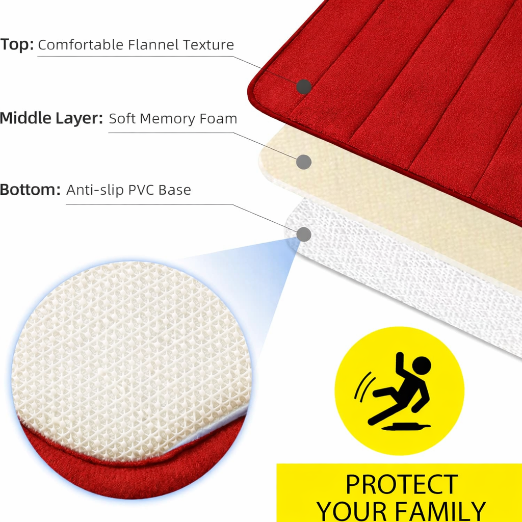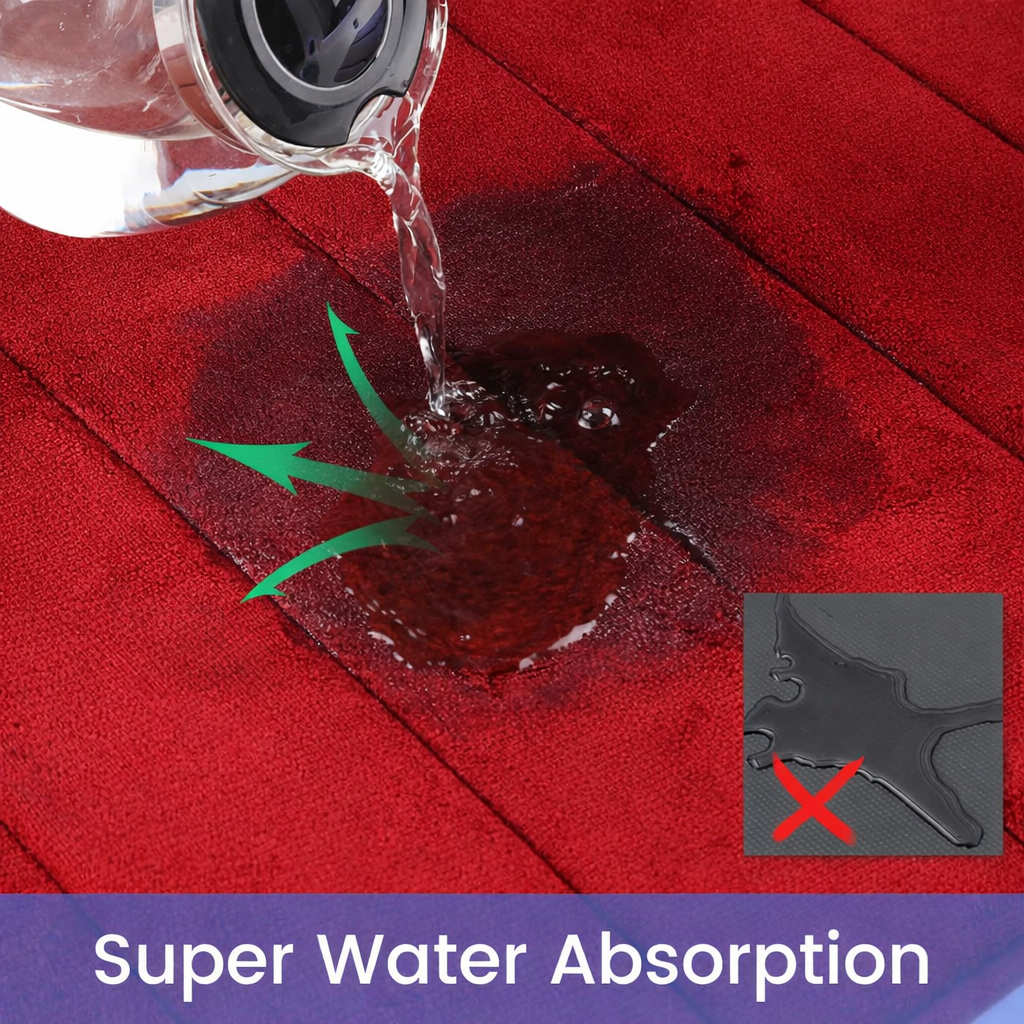 Set Covorașe de Baie 2 Bucăți – 80x50 cm & 50x40 cm, Rosu, Antiderapante, Super Absorbante