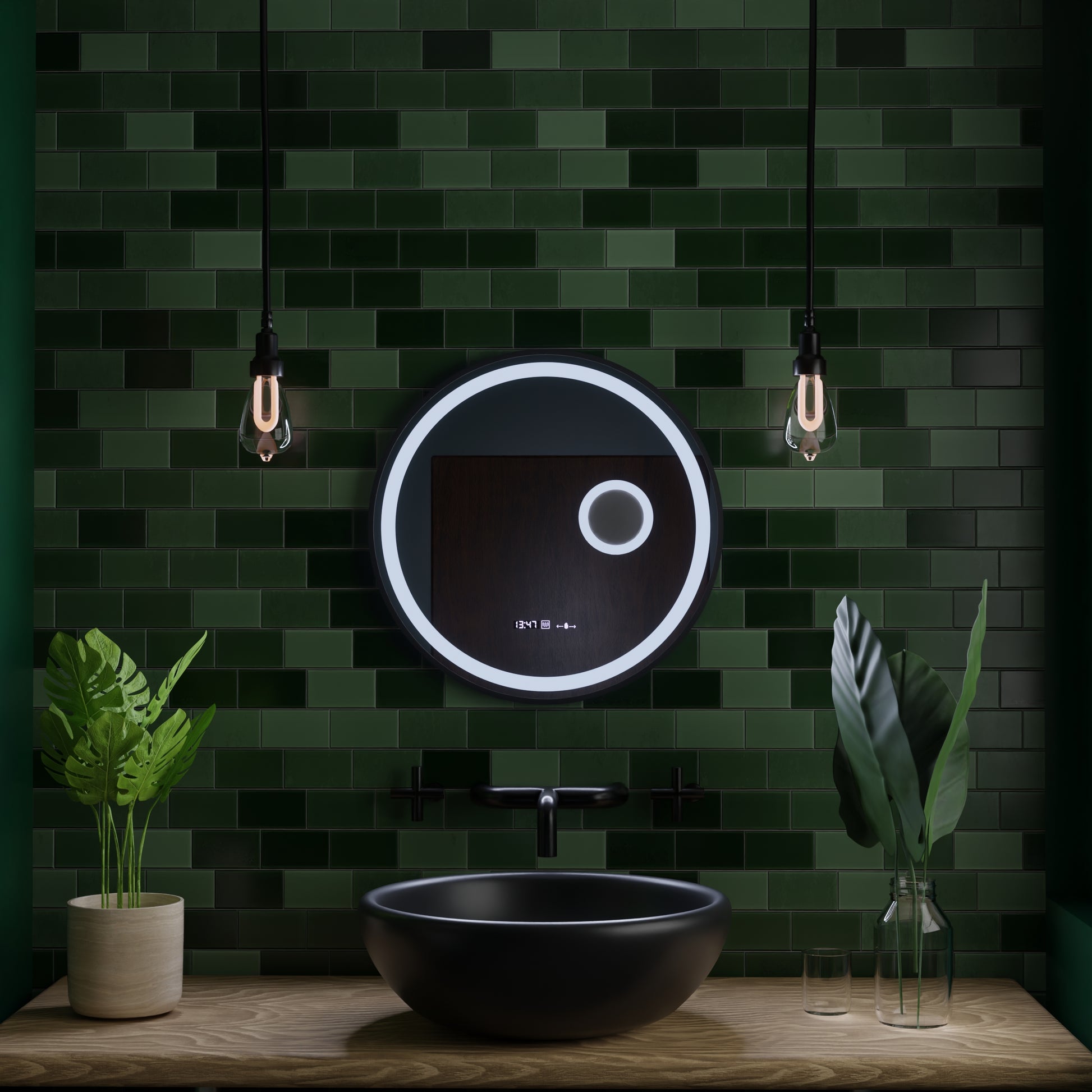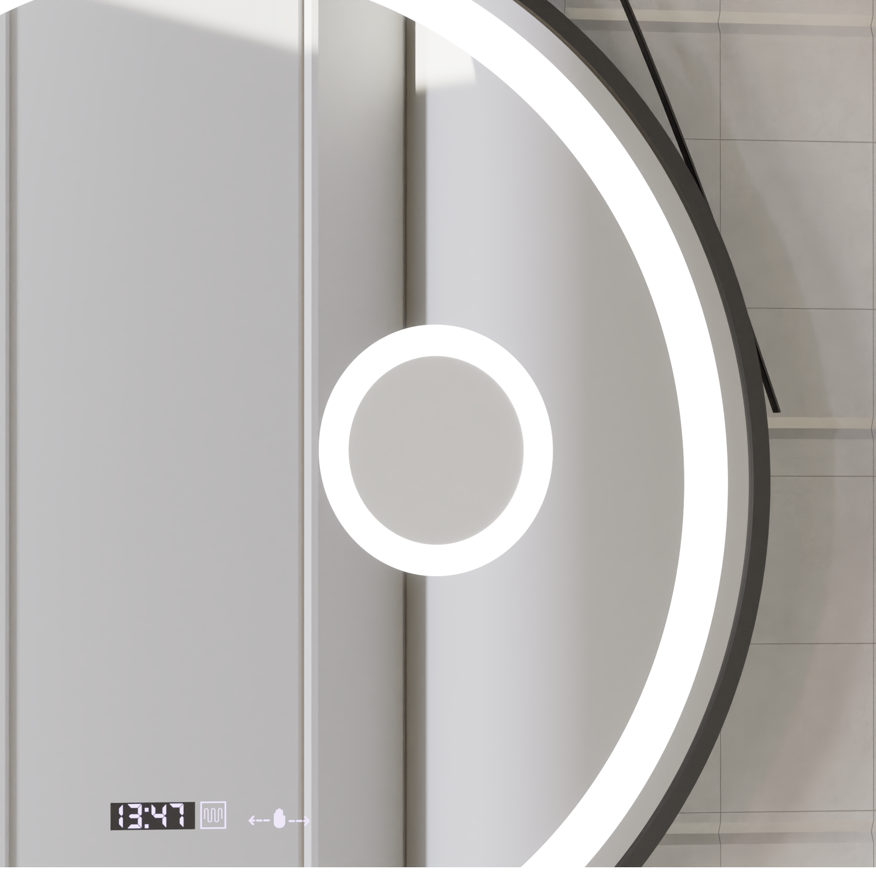 Кръгло светодиодно огледало, 60 см, сензор за движение MICAH MOTLEGLOW MARCELLO, система за размразяване, часовник и термометър, козметична лупа, подражаема