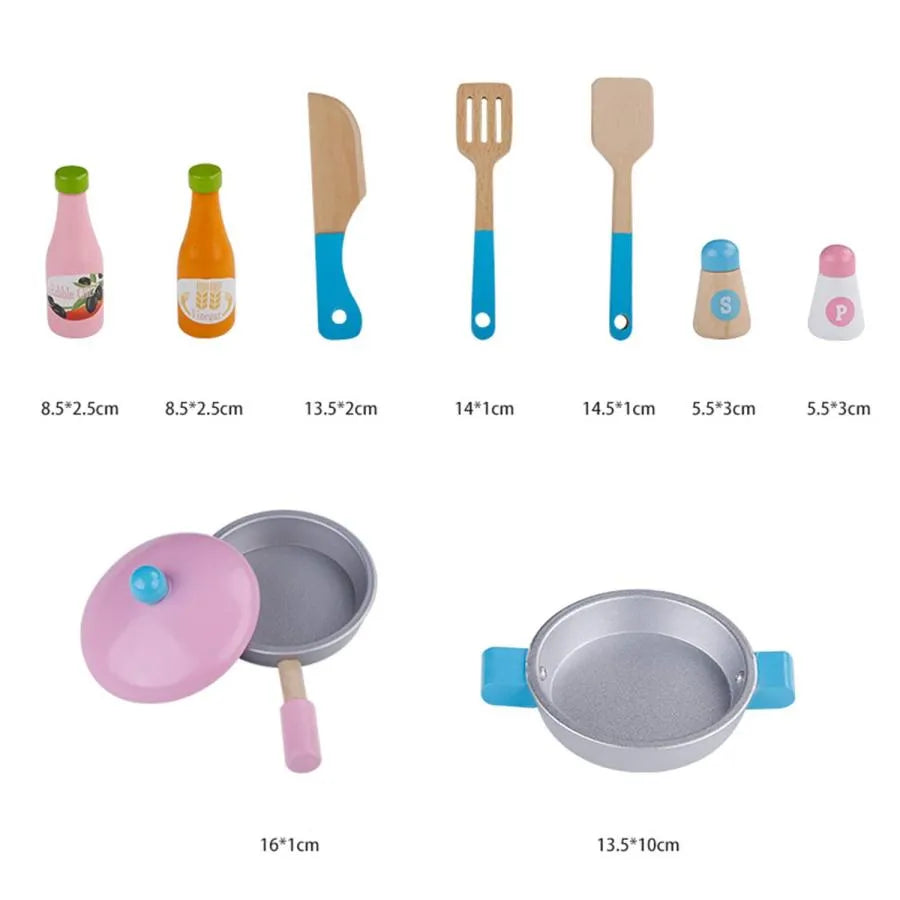 Кухнята е изработена от безопасни материали, като дърво и нетоксични бои, така че можете да се успокоите от безопасността на детето си.