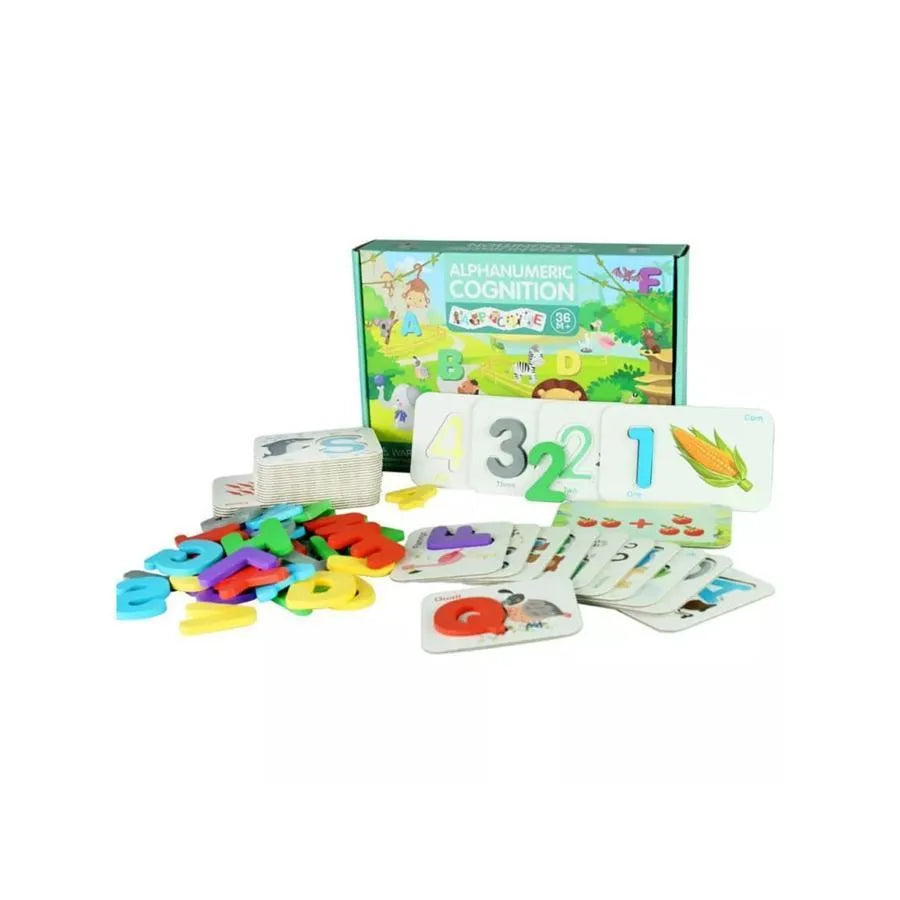 Образователна игрална азбука на букви и номера с животни, зеленчуци и плодове, дърво и картон
