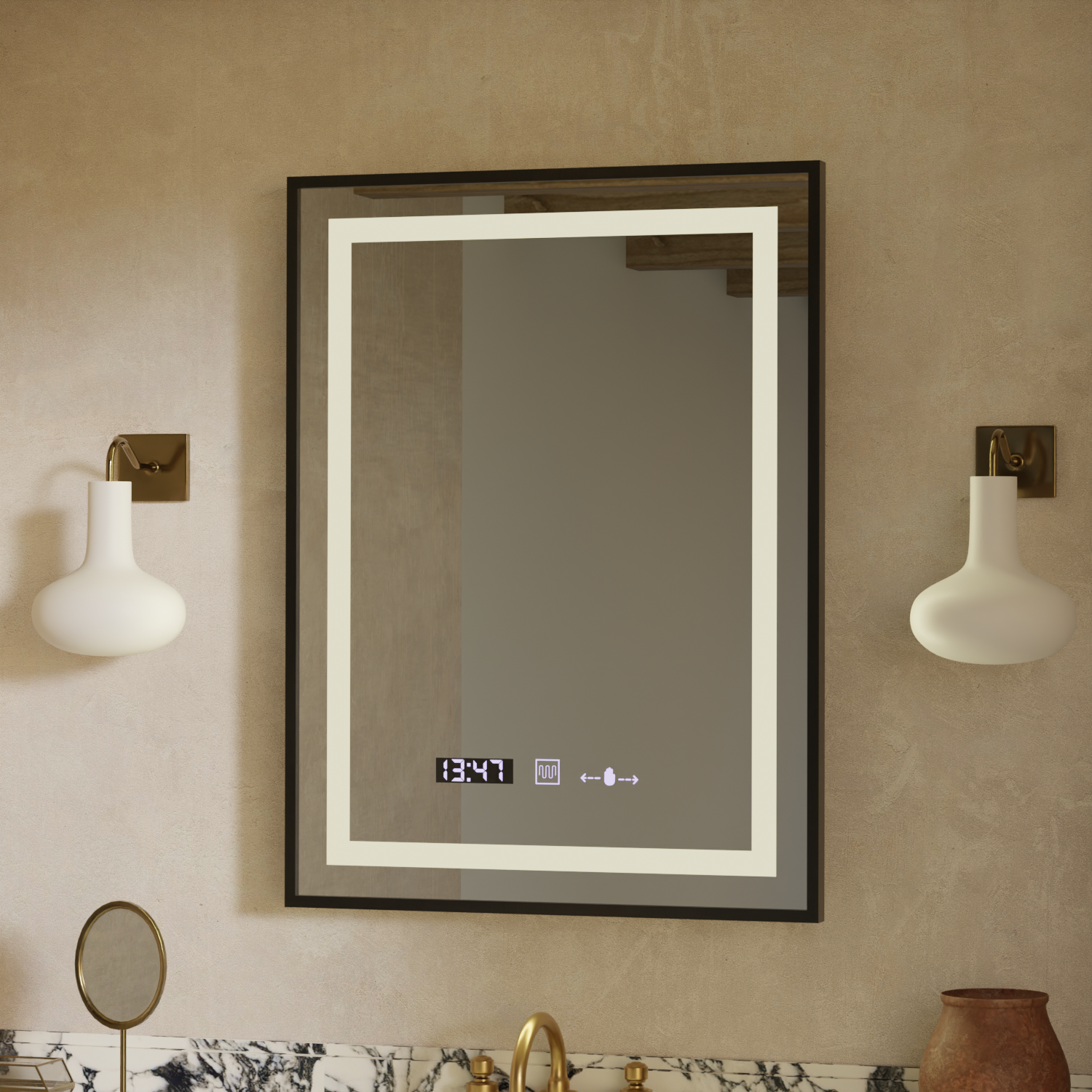 Правоъгълно светодиодно огледало, 60x80см, Verite Majeste Noir Motion Glow Marcello, система за размразяване, часовник и термометър, подразбиращ се