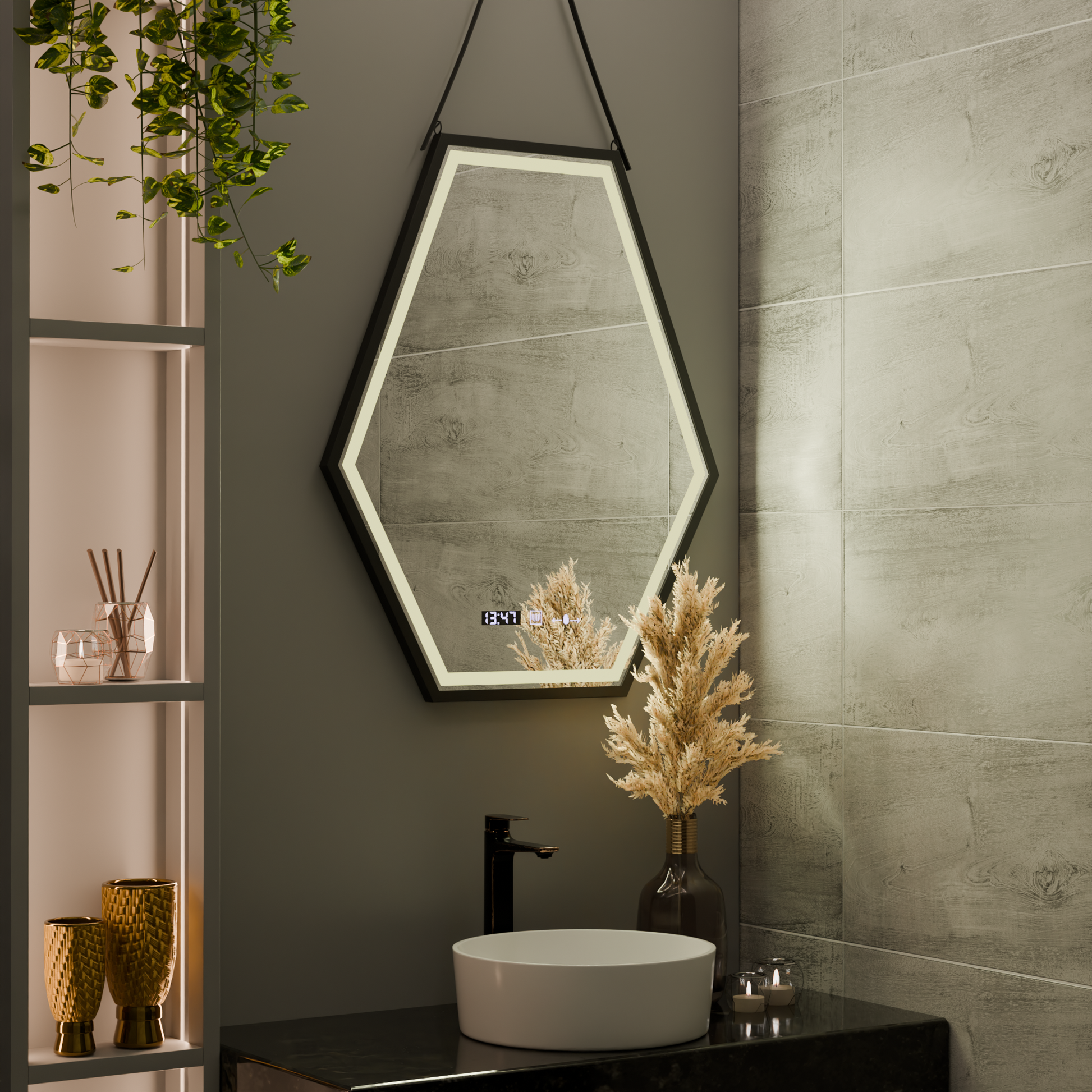 Правоъгълно светодиодно огледало 120x80 см - Motionglow Marcello Той извежда на преден план усъвършенстваната функционалност в щедър и елегантен формат. Намаляемо светодиодно осветление, активиране на сензора за близост и интелигентни функции-потиснатост, часовник, термометър и интегрирано козметично увеличение-трансформиране на огледалото в надежден съюзник за ежедневието. Перфектен за просторни бани или самостоятелни спа.