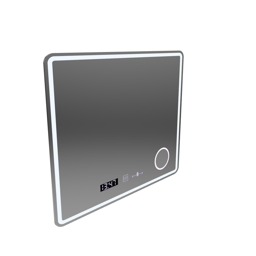 Правоъгълно светодиодно огледало, 60x80см, Eclat Motionglow Marcello, Clock & Thermometer, система за размразяване, козметичен луп