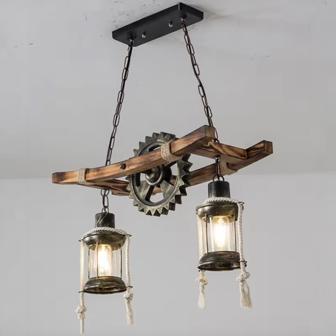 Ретро въжен полилей LV590/2BK, 9xE27 Тъмно дърво