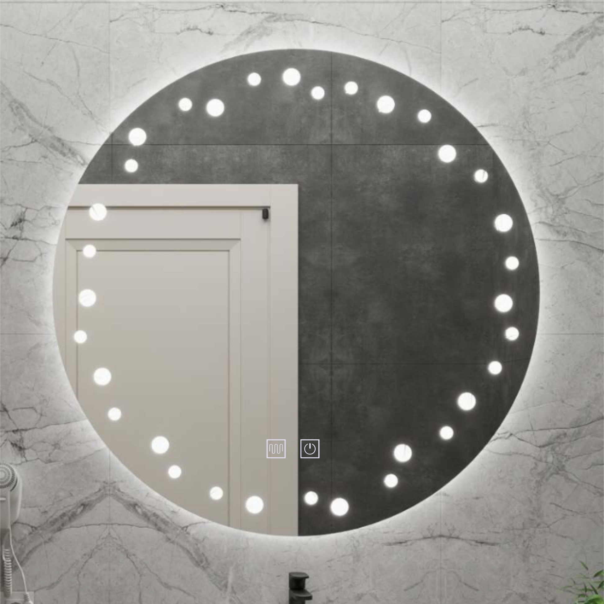 LED огледало Touch Ivory, система против запотяване, диаметър 60 см, студена светлина 6000K