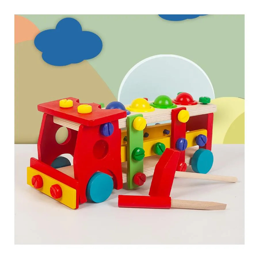 Дървената пейка с инструменти с оформена камион е забавна и интерактивна играчка, която стимулира креативността и развива фините двигателни умения на детето. Ето някои характеристики на тази играчка: