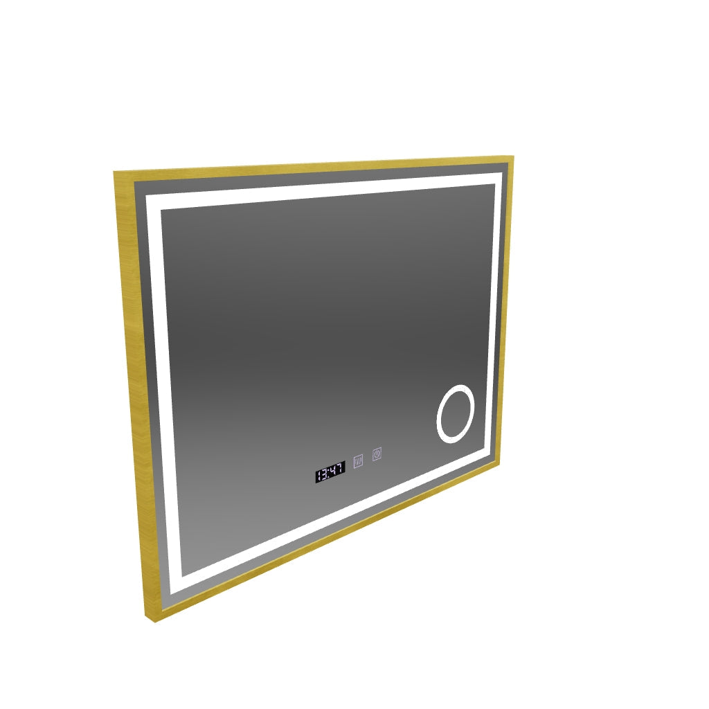 CLARUS Touch LED система за размразяване на огледалото, часовник и температура 80x60 cm Козметична лупа с матирана златна рамка