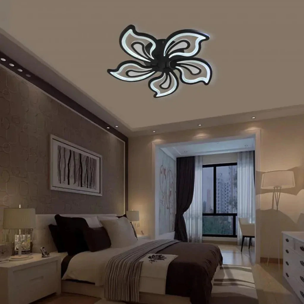 Петте „венчелистчета“, осветени от силни светодиоди, създават смел визуален ефект и осигуряват широко разпределение на светлината. Включеното дистанционно управление ви дава пълен контрол върху атмосферата: можете да избирате между студена светлина (за жизнена атмосфера) (за получаващ комфорт) или неутрална (за оптимално общо осветление) и можете да регулирате интензивността на светлината с функцията на сутринта, адаптирайки я перфектно към всеки повод.