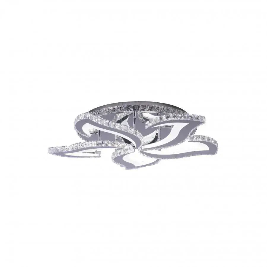 LED полилей с дистанционно управление KAMDYN RGB, от 89W, впечатлява с модерния си флорален дизайн, включващ пет стилизирани елемента във формата на цветя, завършени в елегантно сребристо. Този полилей е не само източник на светлина, но и декоративен център, предлагащ изключително гъвкаво осветление благодарение на технологията RGB, което ви позволява да избирате от богата цветова гама. Освен това можете да изберете светлина студено, горещ или неутрален, адаптиране на атмосферата според предпочитанията или нуждите.