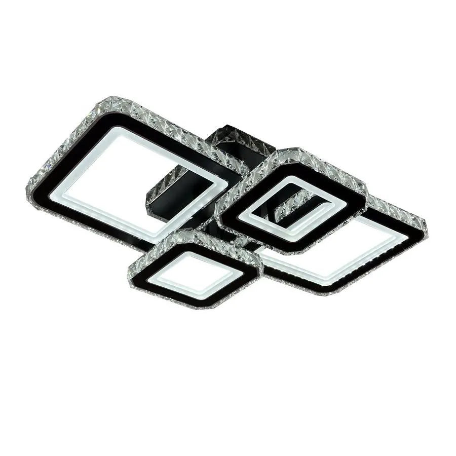 Blakely Chandelier е отбелязан със своята уникална геометрична структура, съставена от четири елегантни квадрата, всеки от които е украсен с прозрачни кристали. Тези кристали добавят нотка на блясък и усъвършенстване, пречупвайки светлината по ефектен начин и създавайки впечатляващ визуален ефект. Отличителна особеност на полилея е RGB (червена, зелена, синя) LED технология, контролируема от дистанционното управление. Това ви позволява да персонализирате светлината според вашите предпочитания, като избирате между различни нюанси на топла, студена или неутрална светлина и регулиране на интензивността на светлината, ако е необходимо. Нещо повече, Demre на полилея предлага допълнителен контрол върху атмосферата.