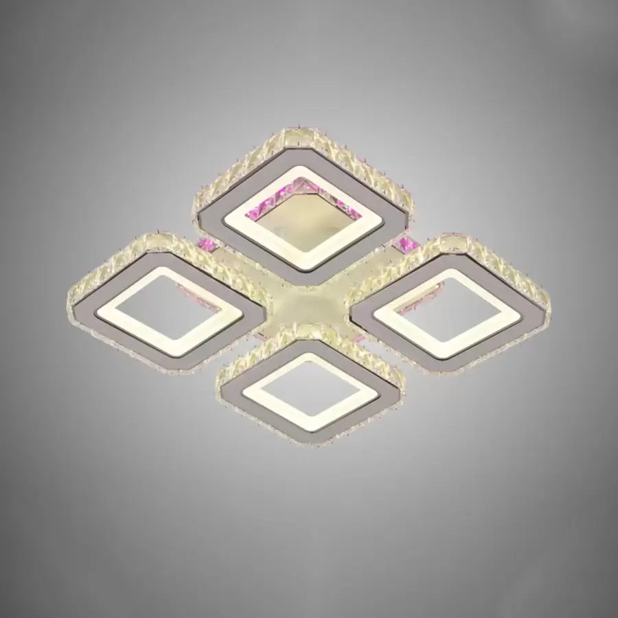 LED полилей с дистанционно управление и кристал Blakely RGB 74W, 4 квадрата, студена/гореща/неутрална светлина, бяло, бяло