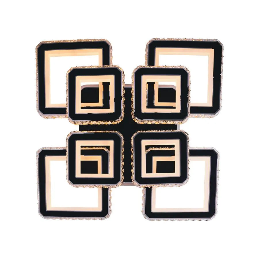 LED полилей с дистанционно и LEILA RGB кристали е ефектно и модерно осветление със смел дизайн, състоящ се от 8 квадрата елегантен, завършен в черно. С впечатляваща сила на 237W, този полилей предлага мощно и много гъвкаво осветление благодарение на функцията RGB, която добавя широка палитра от околни цветове.