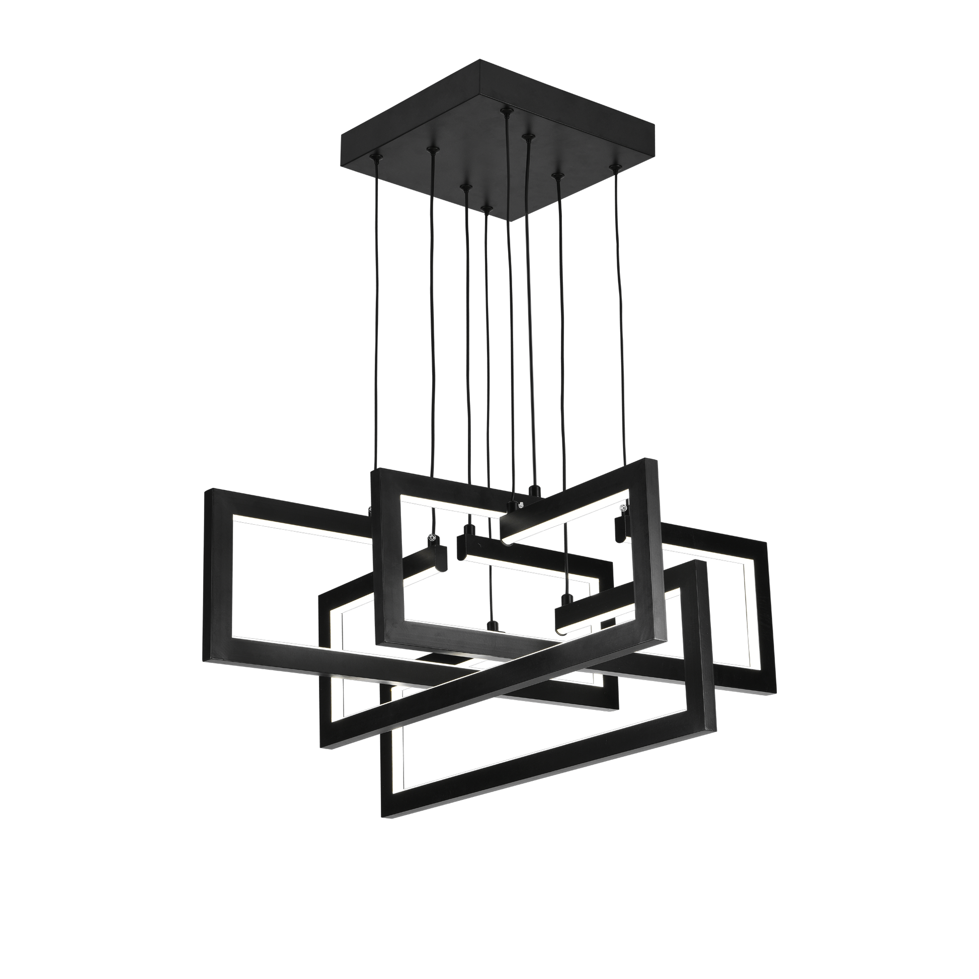 LED полилей с дистанционно управление, окачен 98W, 4 елемента, студена/топла/неутрална светлина, димиране, регулируема височина, черен