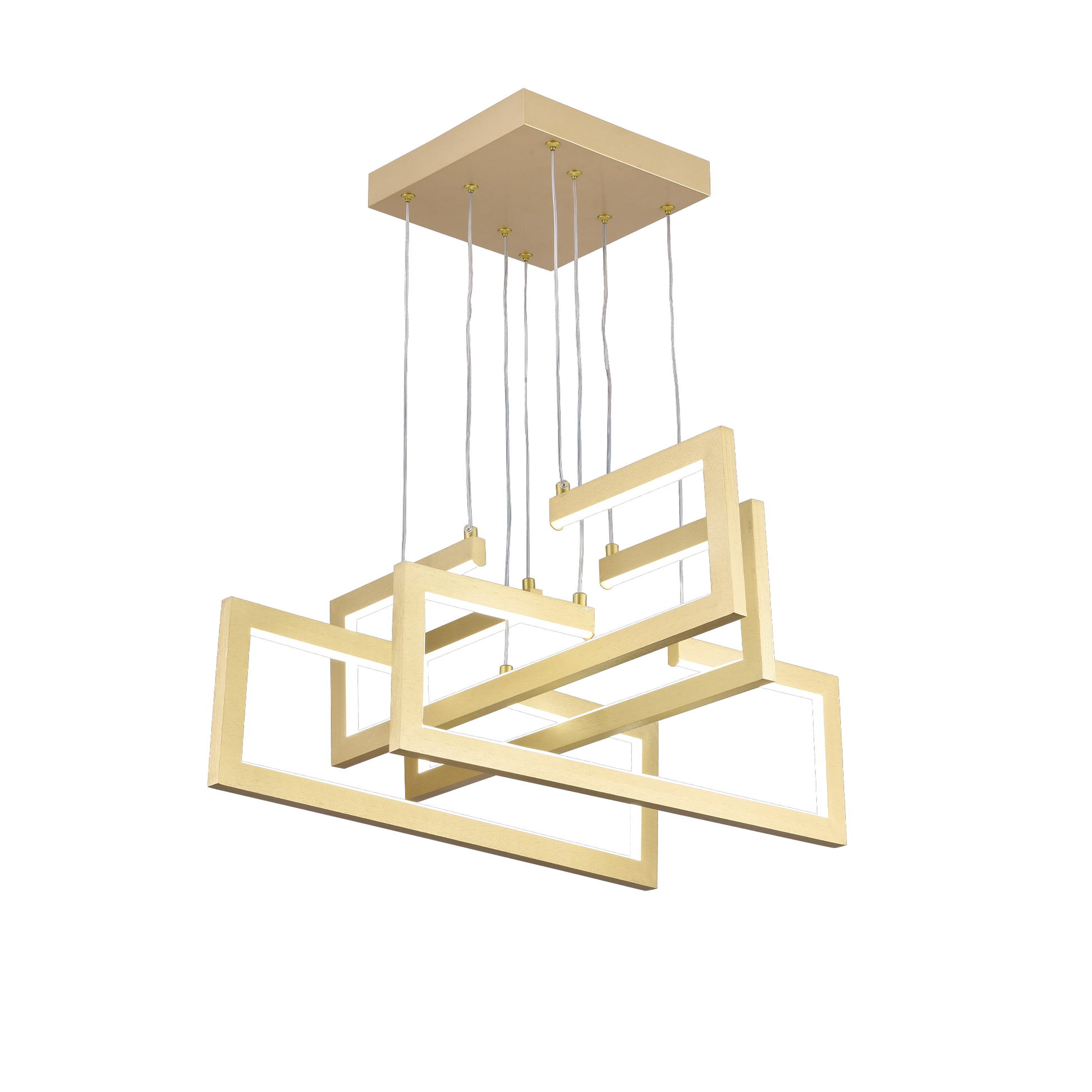 LED полилей с дистанционно управление, Окачен 98W, 4 елемента, Студена/Топла/Неутрална светлина, Димируем, Регулируема височина, Златен