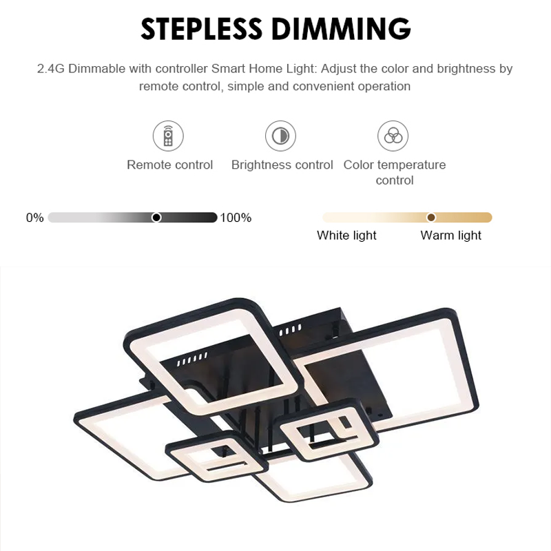 LED полилей с дистанционно управление Ella 124W, 6 квадрата, студена/гореща/неутрална светлина, нестабилна, черна