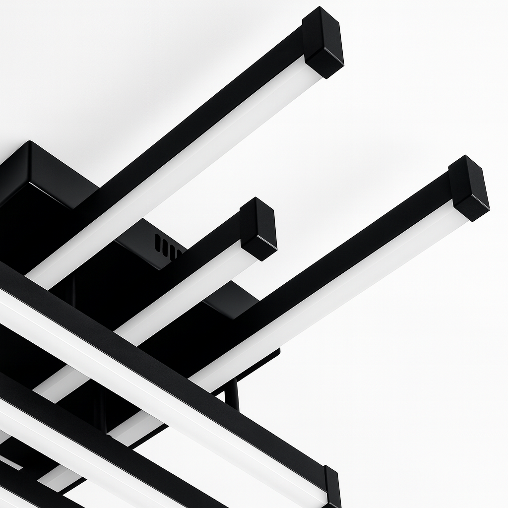 LED полилей с дистанционно LINEX (6 рамена) е с мощност от 63W и светлинен поток от 5040 lm, със светлината Димируем и три налични цветови температури: 3000K, 4000K, 6000K (топло, неутрално, студено). Работи при 220–230V, има автономност от 25 000 часа и се контролира от дистанционно управление или класически ключ. Дизайнът е модерен, с формата ЛИНЕЙЕН и структура на ARMS, завърши черен, направени от акрил и метал. Монтажът е на тавана, с размери от 70см дължина, 8 см ширина и 13см височина. защита IP20, храна към мрежата. Препоръчва се за всекидневна, кухня или спалня.