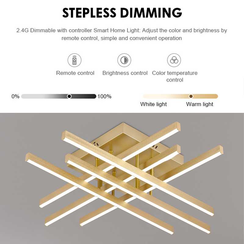 LED полилей LT171/4GD съчетава елегантността на финала злато с модерна функционалност. с 4 декоративни елемента и 54W вграден LED, осигурява мощно и ефективно осветление. от включено дистанционно управление, можете да регулирате интензитета и температурата на светлината: 3000K (топло), 4000K (неутрално), 6000K (студено).