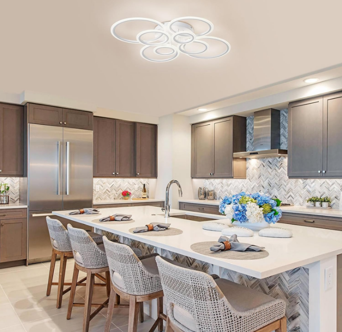Всеки кръг се интегрира висококачествени LED ленти, който разпределя светлината равномерно и комфортно, без тъмни участъци. С обща мощност от 130W и впечатляващ светлинен поток от 10 400 lm, BETTY е идеален за просторни всекидневни, големи спални, офиси или открити пространства.