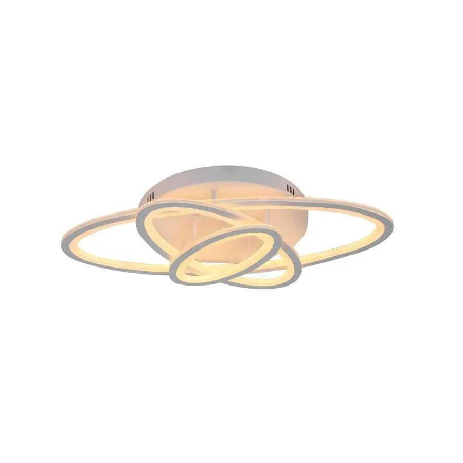 LED полилей TIANA с дистанционно, от 83W, внася плавен и елегантен дизайн във вашия дом чрез трите взаимосвързани елипси, завършени в ярко бяло. Този полилей е не само източник на светлина, но и модерен декоративен елемент, предлагащ разнообразно осветление чрез възможност за избор между светлина студено, горещ или неутрален, като по този начин се адаптира към всяка атмосфера или дейност.