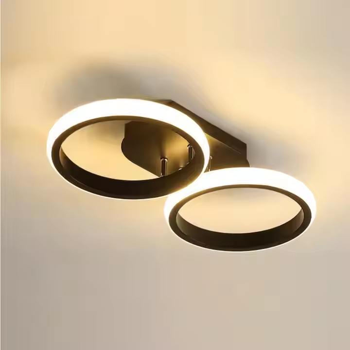 Дизайнът с взаимосвързани кръгове не само изглежда модерен, но също така осигурява балансирано разпределение на светлината, създавайки приятна и удобна атмосфера.