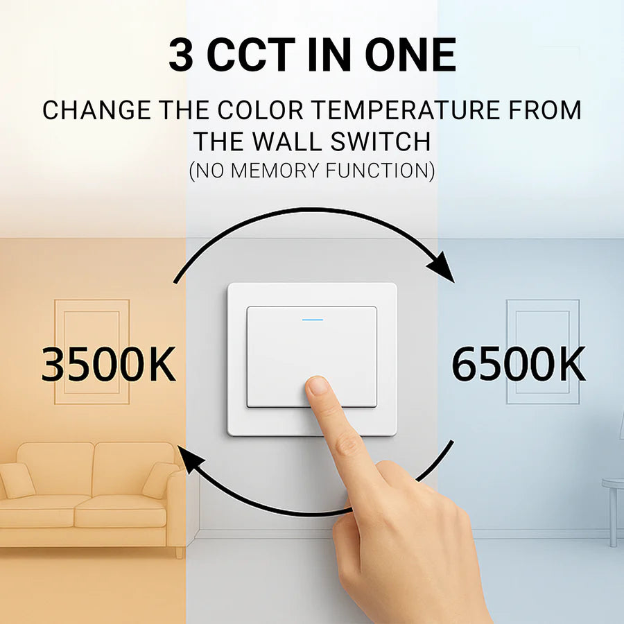 ⚠️ Внимателно!: Настройката на определена цветна температура може да се извърши само ако полилеите са спрени и стартирани от дистанционното управление. И двете при полилеите с дистанционното управление, последователното натискане на превключвателя променя типа на светлината.
