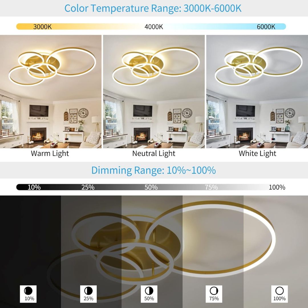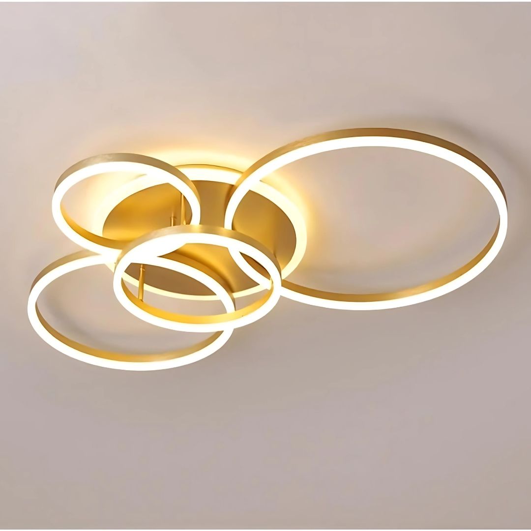 LED полилей с дистанционно управление DARIO, 4 кръга, 112W, топла/студена/неутрална светлина, димируем, златен