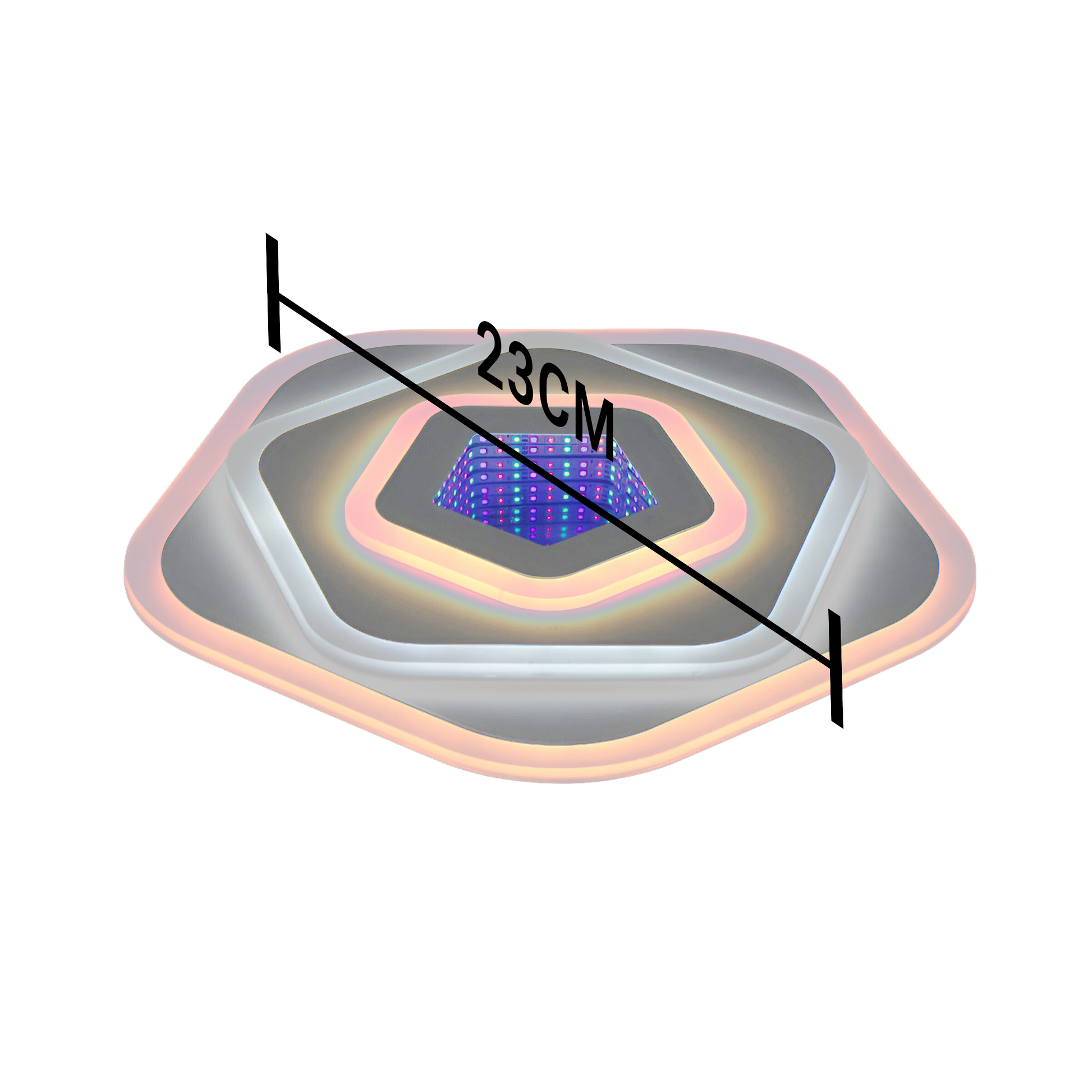3D ефектът, съчетан с кръглата форма и размер от 24 cm, може да създаде интригуваща фокусна точка, дори в малко пространство. С мощност от 40W би било подходящо за осветяване на по-малки площи като коридори, бани, съблекални или като допълнително осветление в по-големи помещения. Бялото покритие му придава изчистен вид и лесен за интегриране.