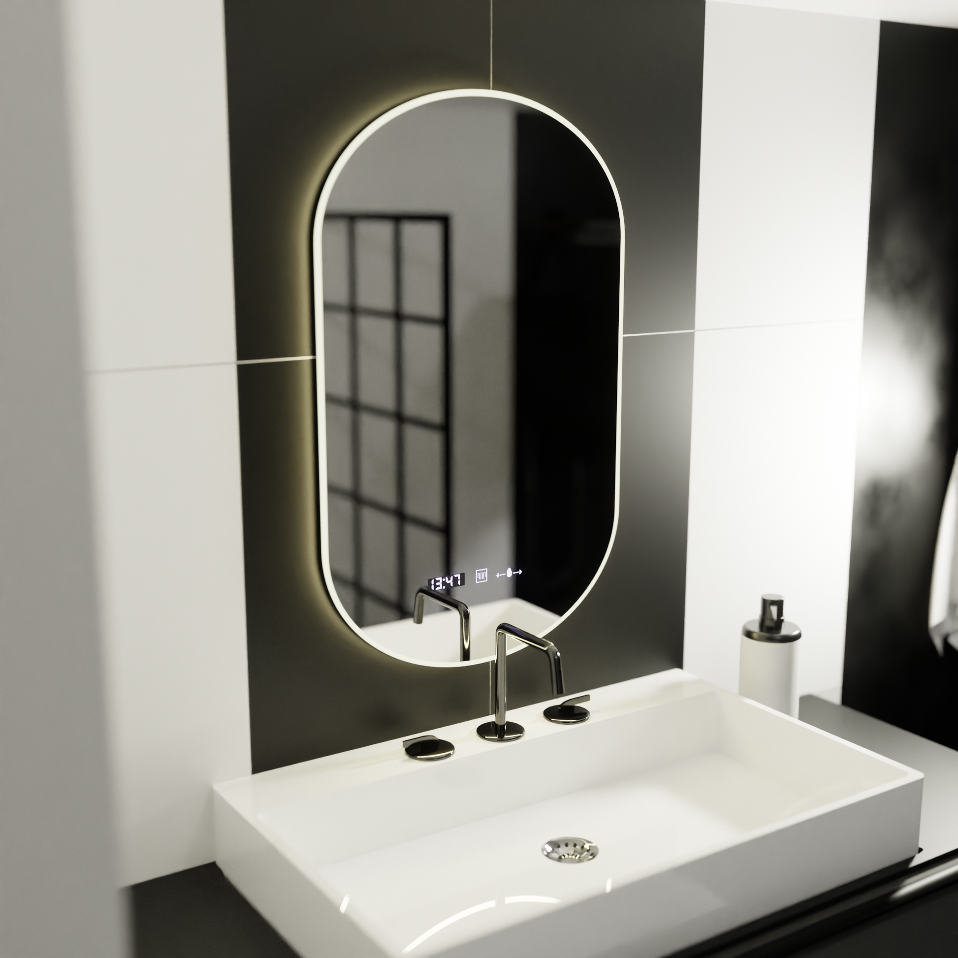 Овално светодиодно огледало, 50x80см, сензор Lucia Marcello, система за размразяване, часовник и термометър, подразбиращ се