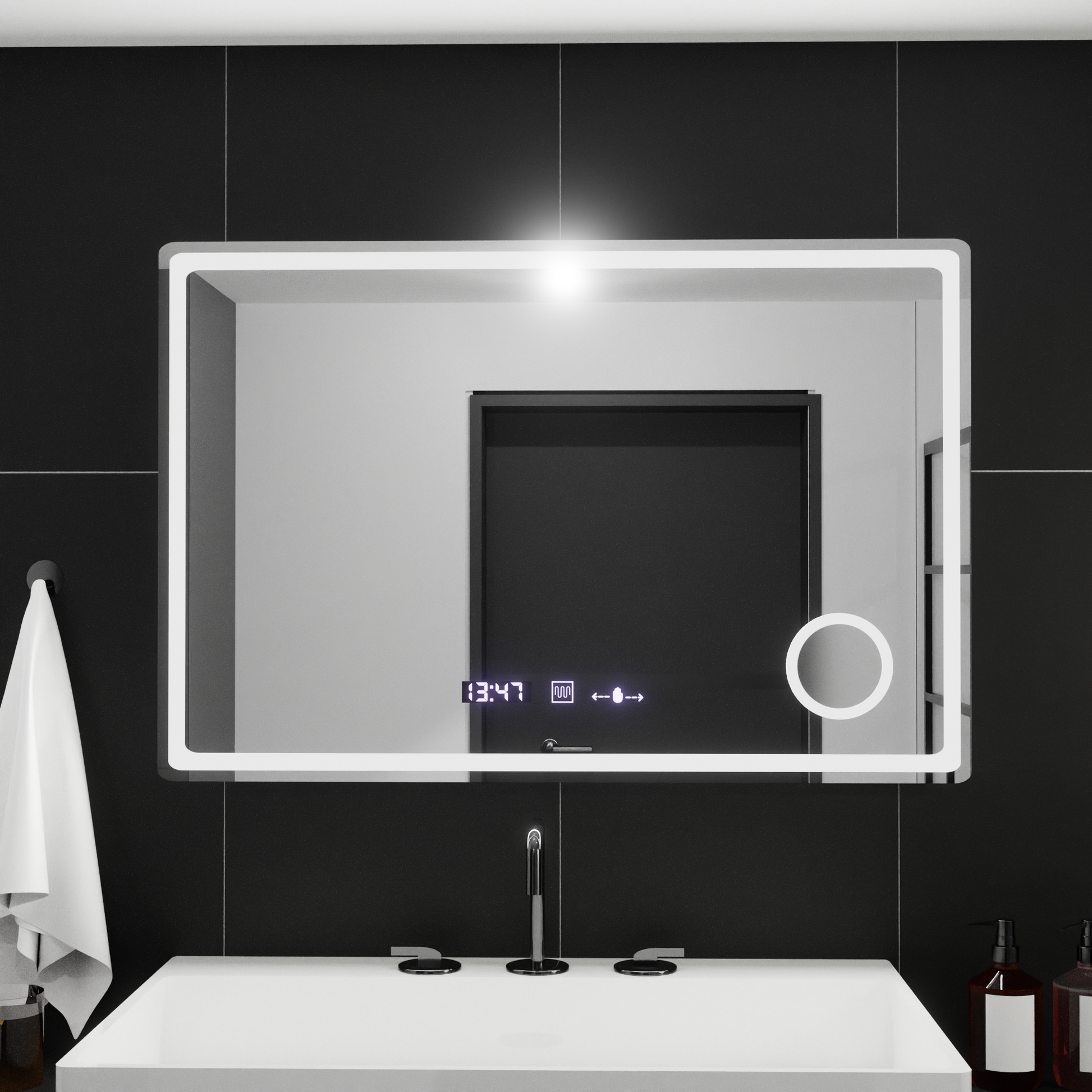 • Елегантен и разширен дизайн: Правоъгълна форма 90x60cm с интегрирано LED осветление.